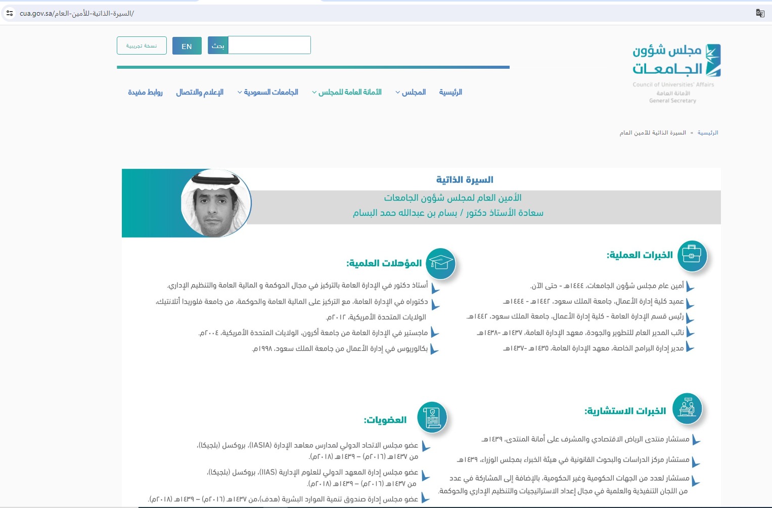 Former secretariesadmin2025-10-08T10:08:43+00:00 الدكتور محمد بن سعد السالمفترة توليه الأمانة من 1414 الى 1419 الدكتور محمد بن عبدالعزيز الصالحفترة توليه الأمانة من 1420 الى 1444 الدكتور بسام البسامفترة توليه الأمانة من 1444 الى 1447